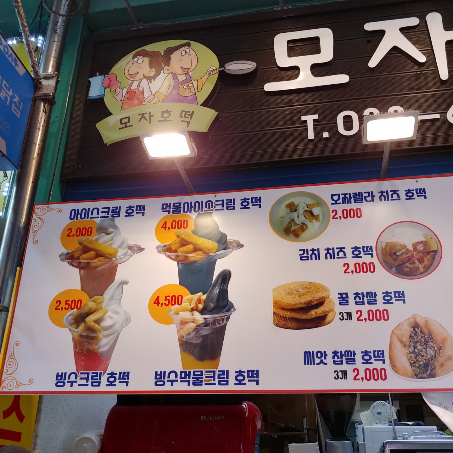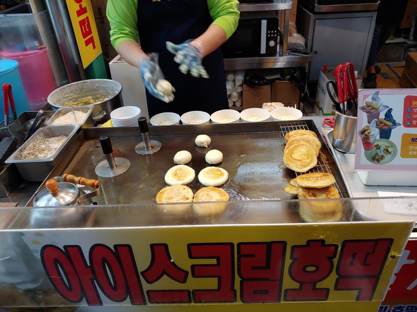 제 입맛에 더 맛있었던건 짜잔! 강릉중앙시장 맛집 모자호떡이예요. 여기는 아이스크림 호떡이 유명해요. 제가 갔을때는 줄도 없어서 바로 받아서 먹을 수 있었어요. 기본인 아이스크림 호떡 2,000원 짜리 시켰어요.