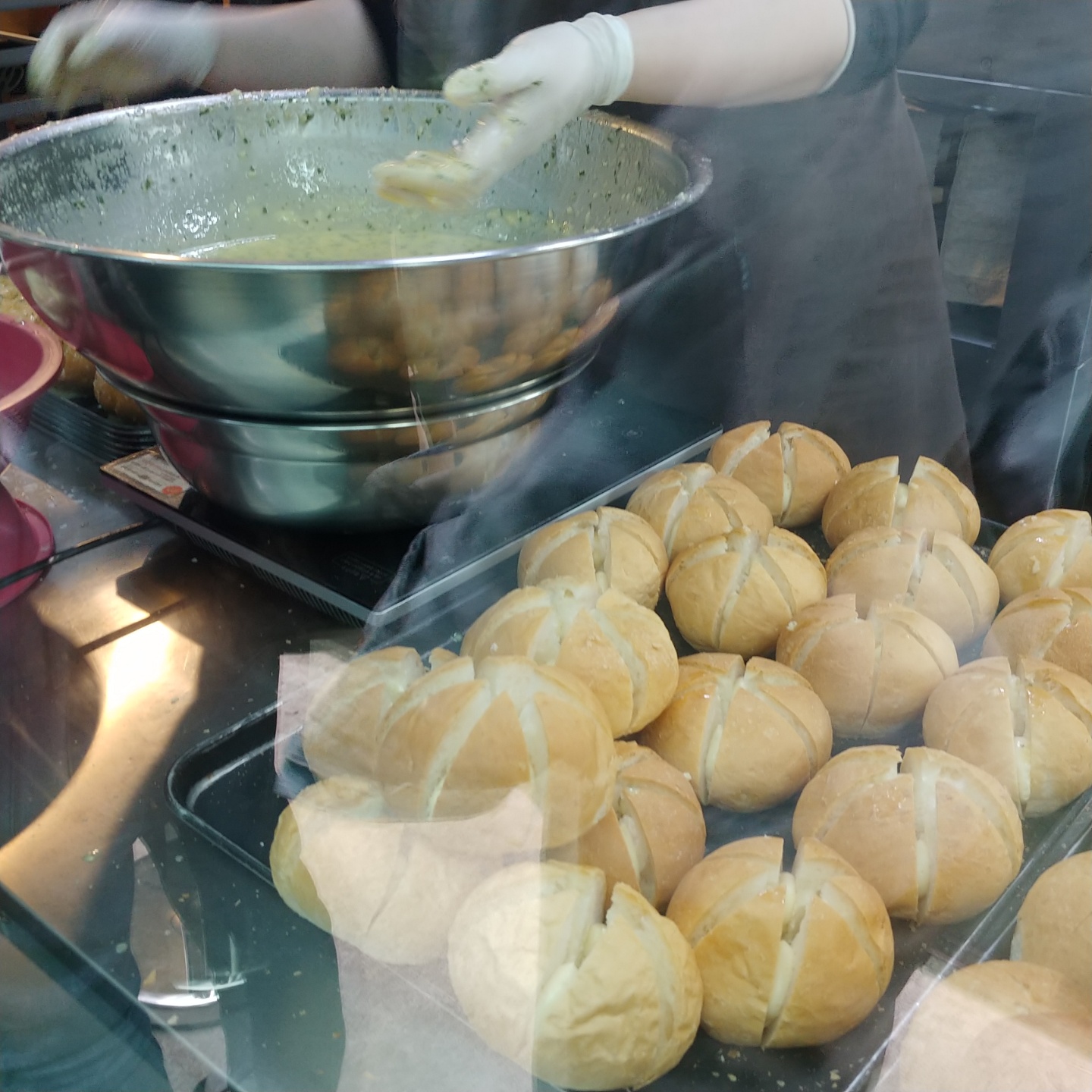 정말 열심히 만들고 계시지만, 우선 가게가 큰편이 아니라서 만드는데 한계가 있고, 또 오시는분들이 ㅋㅋㅋ 진짜 많이 사가시더라구요. 저는 딱 단품2개만 구매해서 맛만 보았는데, 세트로 사가시는 분들이 많아서 줄이 길었어요. 강릉 중앙시장 맛집하면 딱 떠오르는 곳이 여기 팡파미유 마늘빵인거같아요. 줄이 제일 길고, 후기를 읽어봐도 기대한 만큼 맛있다는 말이 많더라구요. 요즘에 서울에서도 팝업스토어 열어서 판매하는 걸로 아는데, 거기도 줄이 길다고 들었어요.